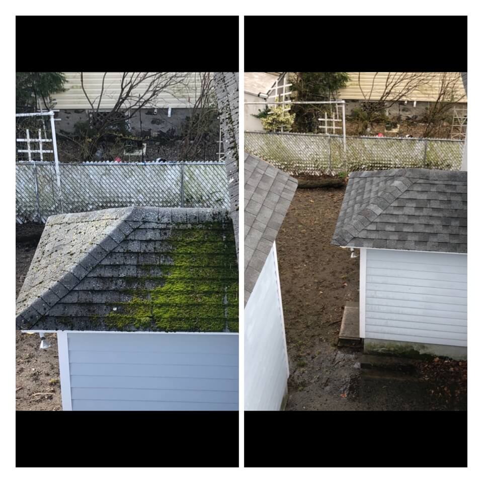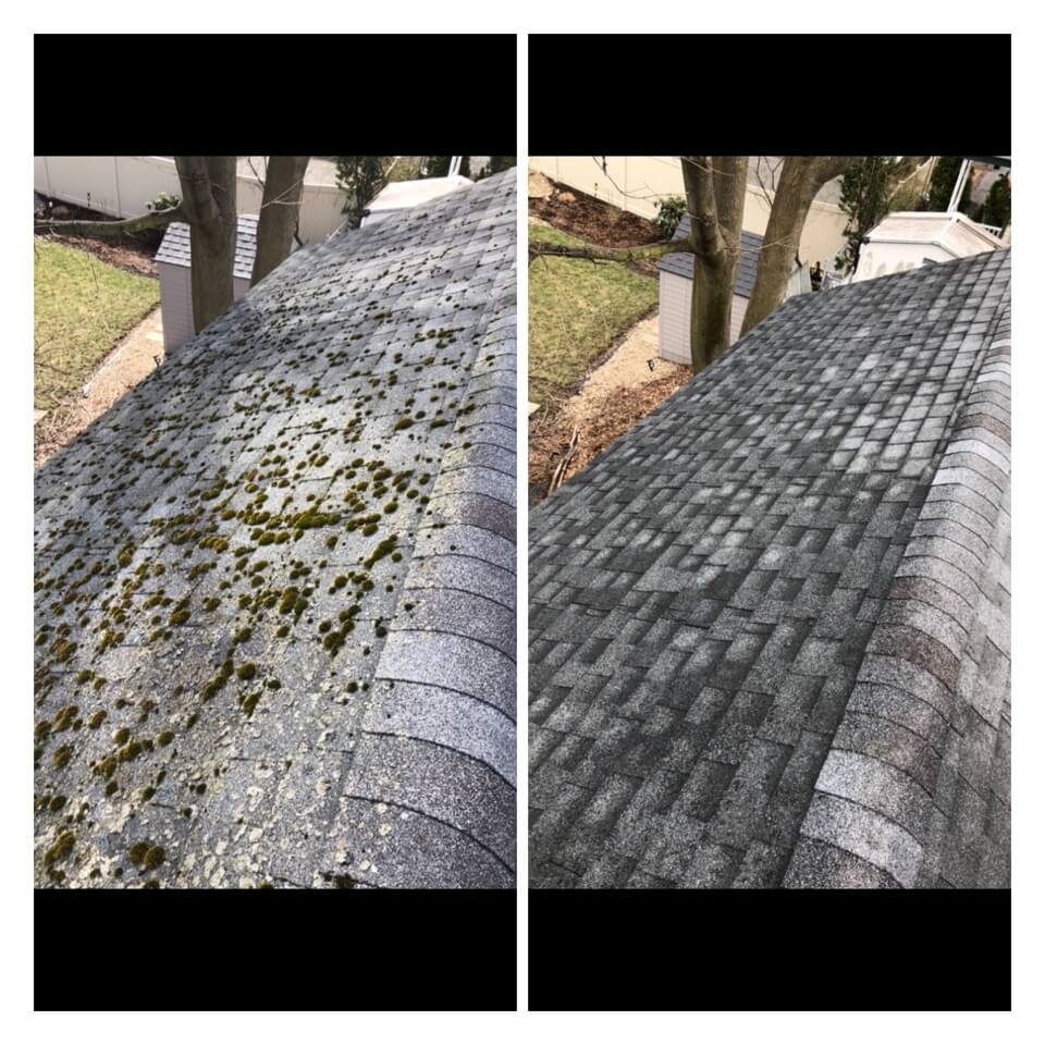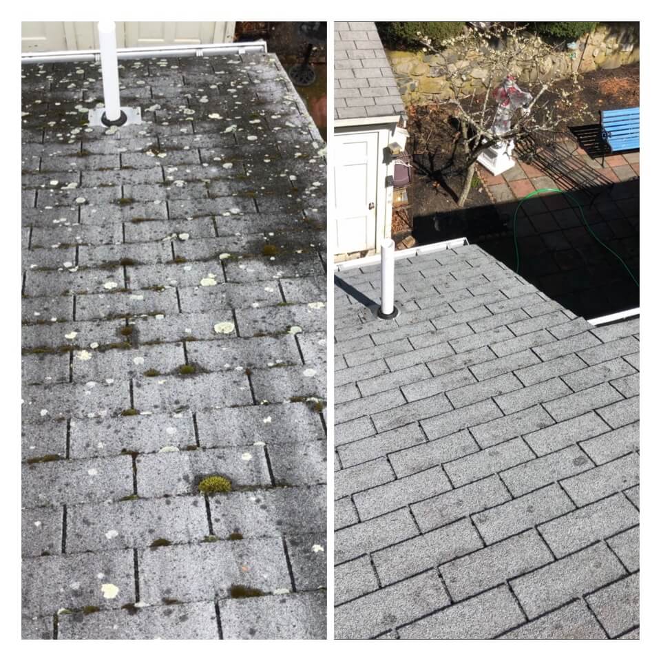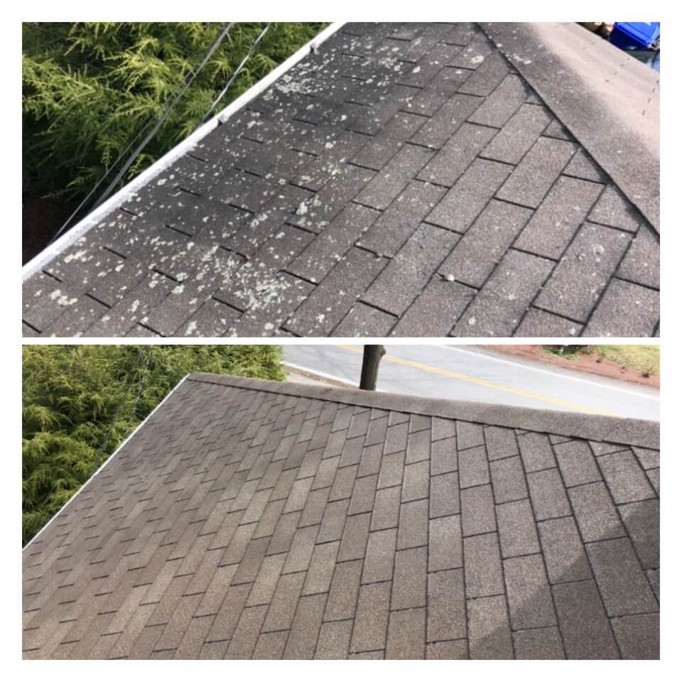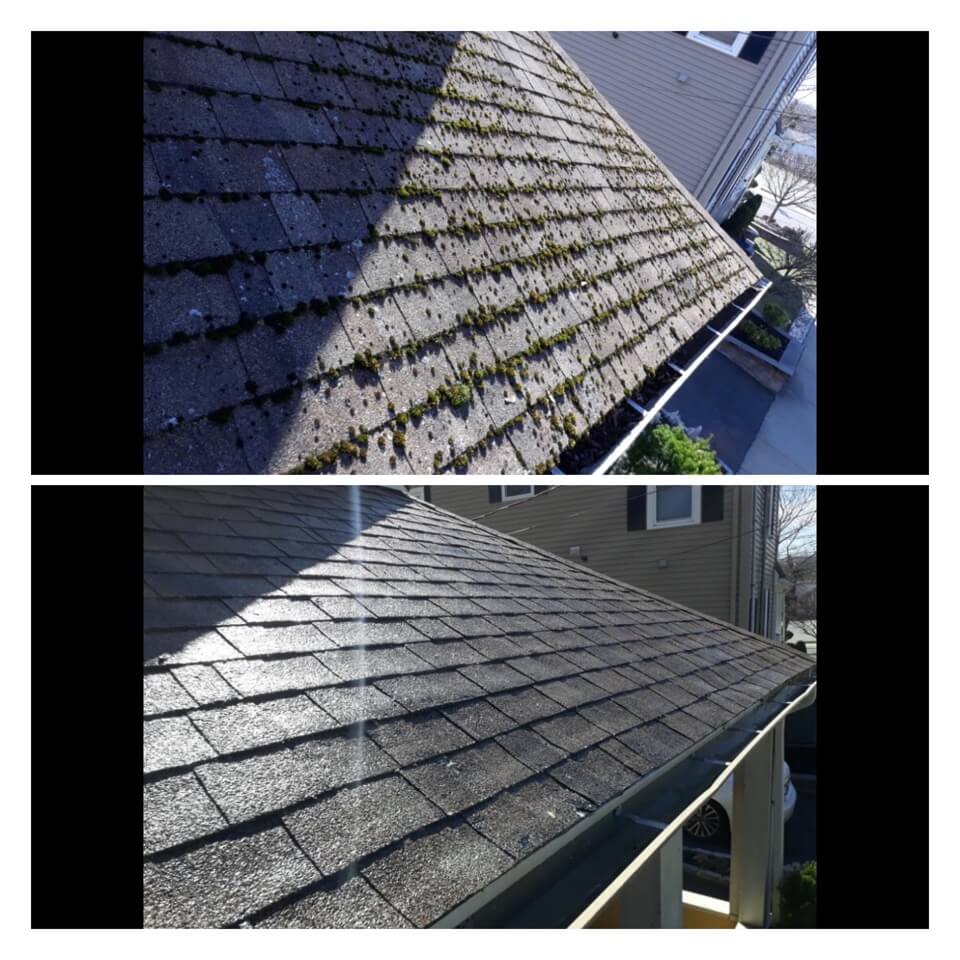 HiCleaners is the most experienced company in Plaistow, NH that deals with roof washing and roof soft washing. All of our employees are trained to recognize precise solution mixing ratios to provide you with the safest and most effective soft washing service. Roofs are a commonly neglected part of a house due to the fact that most people don’t have ladders to access it, so it is very easy to just leave it alone and forget about problems that may start to arise. Just like many home owners, discoloration and small bits of moss on a roof can be overlooked because of the misconception that it is just aesthetic. However, it isn’t just aesthetic, the moss slowly lifts the granules off the shingles which in turn shorten the life of the shingle. The moss also spreads, just like any bacteria if it is left alone for too long, it can quickly become a problem that spirals out of control. Call HiCleaners for a free quote, we only use the most advanced eco-friendly solutions and equipment to make sure the job is done right, for the safety of the employees, your plants, grass, pets, and children.